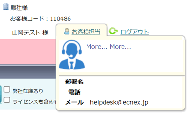 (2)TOPページの一番右上にお客様の担当営業の連絡先を記載しています。